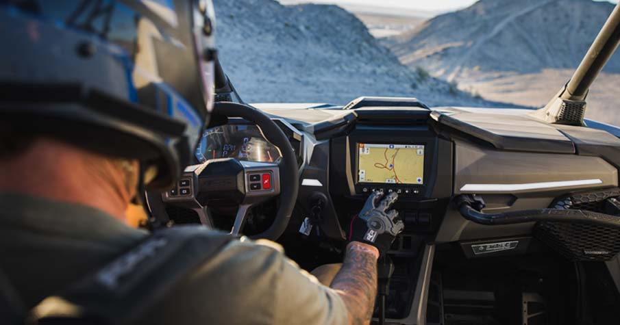 RIDE COMMAND® 7” Glove-Touch Display: DYNAMIX 2.0 Visualizer, Built-In GPS, Group ride (cell-based or GPS based), Topographic Mapping, Bluetooth & USB Smartphone Connectivity, AM/FM & Weather Radio (Accessory Speakers Required - Sold Separately), In-Vehicle Communications Capable With Optional Sena Headsets, Polaris P.A.S.S Anti-Theft System. Dual-sweep Analog Dials w/ 4" LCD Rider Information Center: User Selectable Blue/Red Backlighting & Brightness, Programmable Service Intervals. Digital Instrumentation: Speedometer, Tachometer, Odometer, Tripmeter, Clock, Hour Meter, Gear Indicator, Fuel Gauge, Coolant Temperature, Voltmeter, Service Indicator and Codes, Seat Belt Reminder Light, Gear Indicator, DC Outlet.
